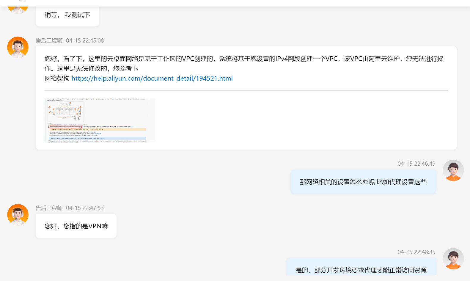 在反馈客服的时候,感觉客服对无影云相关的问题并不熟悉。当然,因为云桌面业务刚上线不久,所以生疏也是可以理解的。系统层面的Bug还是有一些未进行优化,一些经常使用的场景,比如说VPN代理,都是无影云目标客户群体很大概率有需求的。有这些局限性实属对使用体验产生了一定程度上的影响。
