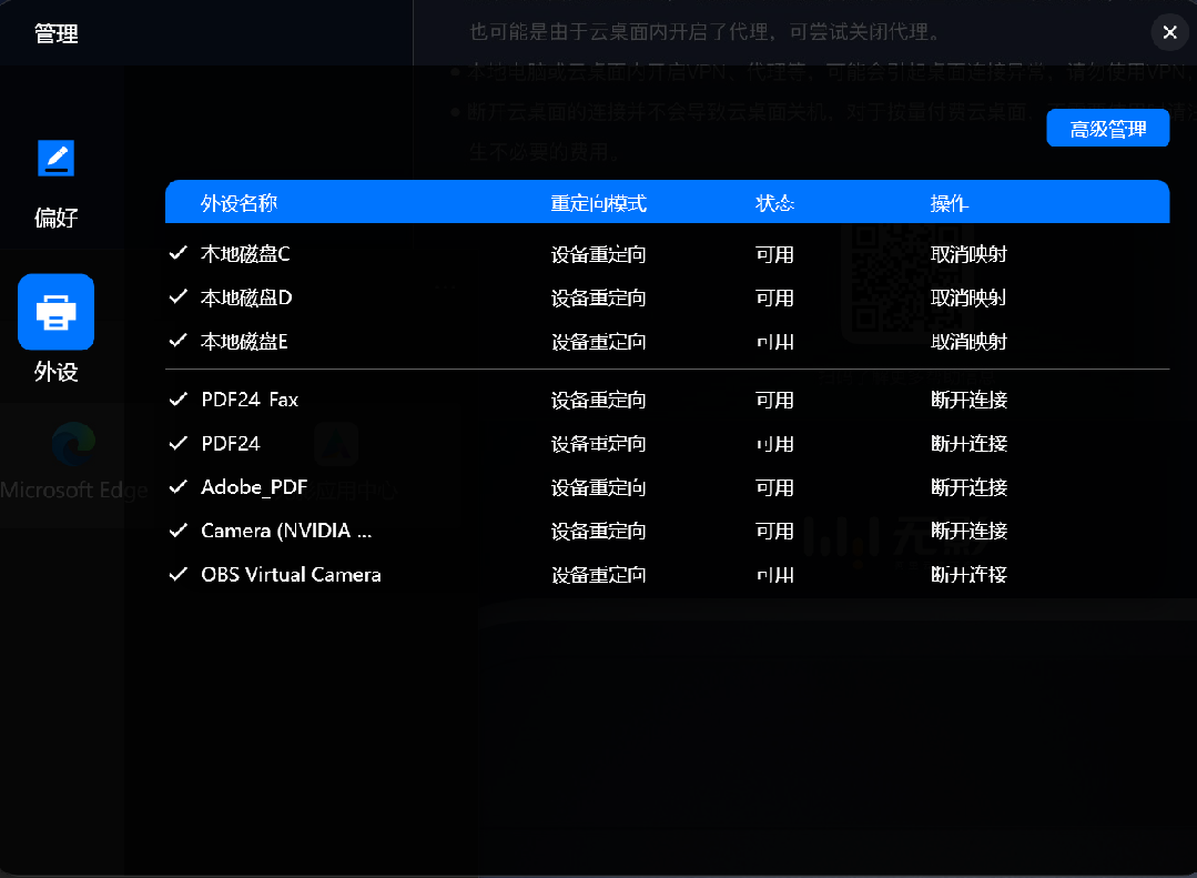 无影云还是有很多创新的,比如说可以将客户端上的硬件设备无缝映射到云桌面中