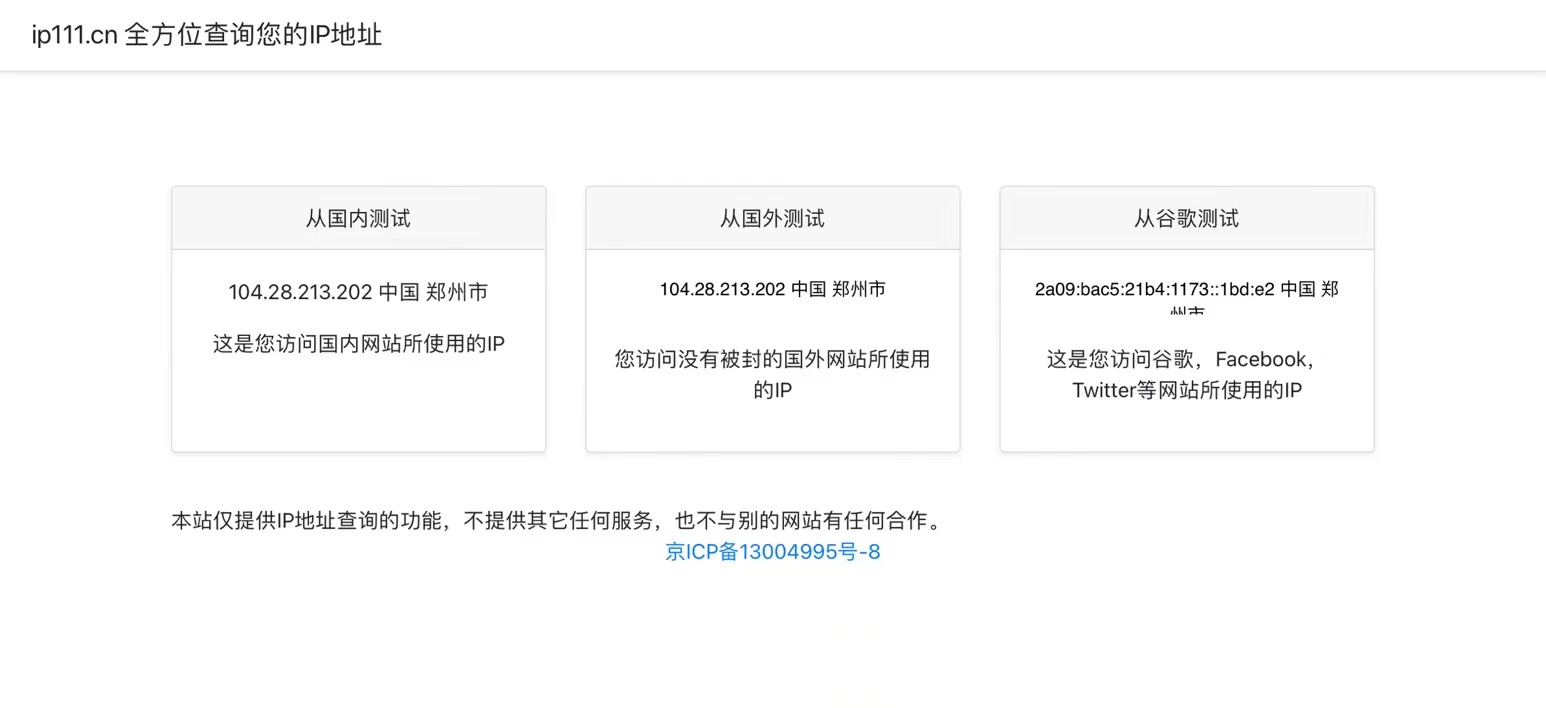 由于订阅服务提供中国大陆节点,因此不会流量不会被阻断。实测Google,Twitter可正常访问。此时IP为大陆本地IP