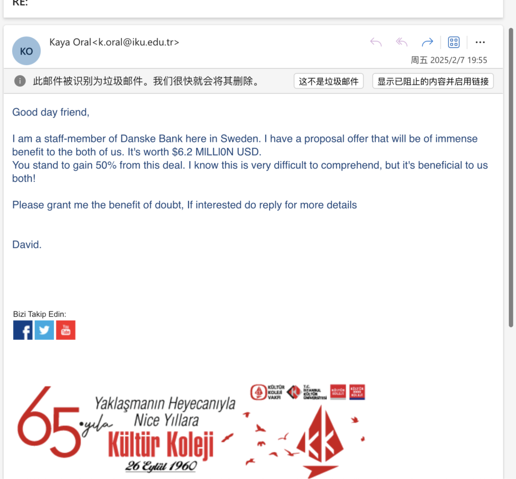 推荐大家尝试使用 ThunderBird 或其他提供类似专业邮件分析功能的邮件客户端进行收信,并加强组织信箱的 dns 记录安全性,使用更严格的发件服务器和邮件签名地址验证规则来规避自己的域名被盗用发信。