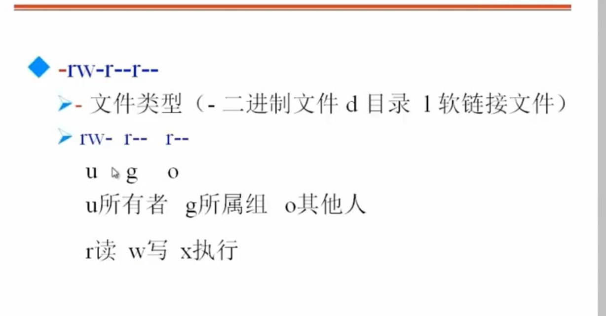 rw- r— r— (u所有者, g所属组 o其他人)