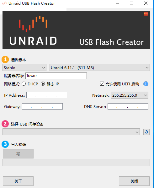 制作工具中,版本请选择稳定通道。网络模式可以提前根据网络环境设置好,避免了后期DHCP随机分配后找不到管理界面的尴尬情况。
