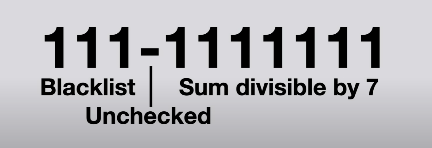 在零售版中,连字符前的三位数字采用黑名单制,即除了黑名单上列出的几种组合,其余任何内容均可通过测试,如下图: